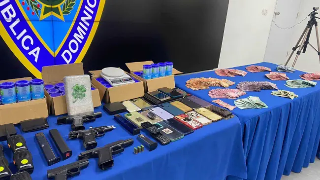 De igual modo, fueron ocupados decenas de frascos con bicarbonato de sodio, varias prendas color amarillo, varios celulares y dispositivos para clonación de tarjetas bancarias, tres vehículos, entre ellos dos jeepetas marca Ford Scape y una motocicleta, al igual que una suma millonaria en efectivo, producto de actividades de narcotráfico.