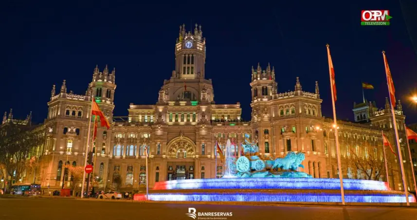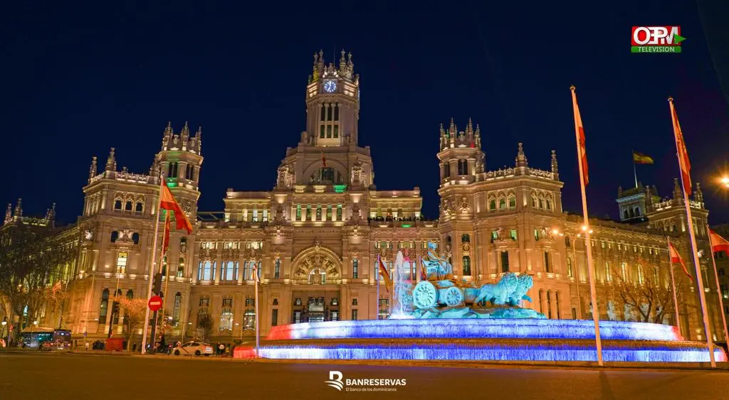 MADRID, España.- En una ceremonia que contó con la presencia del presidente Luis Abinader, la emblemática estatua de La Cibeles, ubicada en el centro de esta capital, fue iluminada con los colores patrios dominicanos, como parte de un proyecto cultural y de orgullo dominicano auspiciado por el Banco de Reservas, en colaboración con la Embajada dominicana en España.