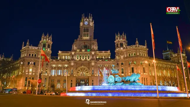 La iluminación de La Cibeles con los colores patrios dominicanos permanecerá desde este jueves 20 y hasta este viernes 21.