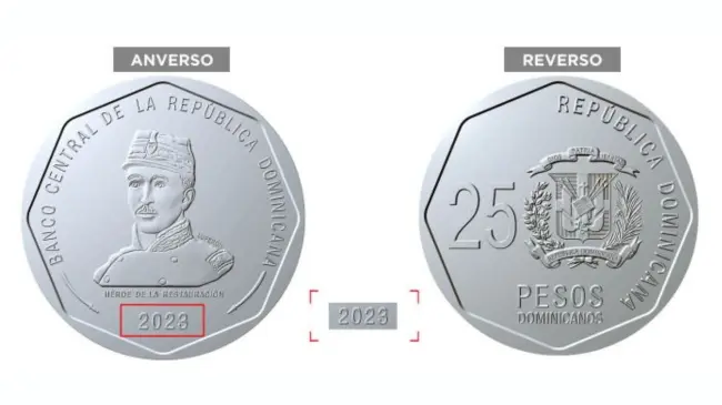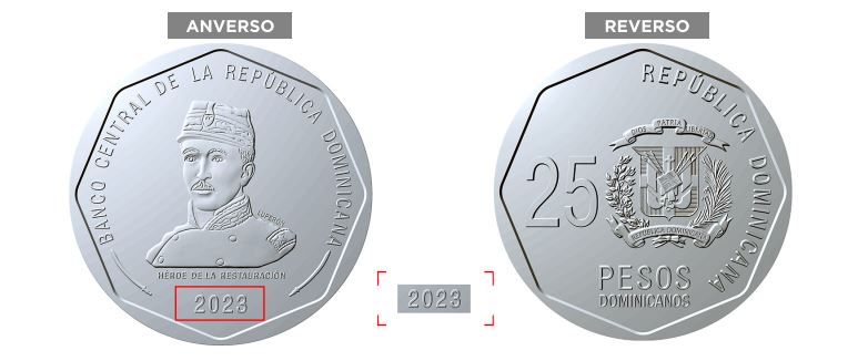 Santo Domingo.– SANTO DOMINGO.- El Banco Central de la República Dominicana informó que a partir del jueves 1 de agosto del año 2024, circularán las monedas de RD$25.00, año 2023.