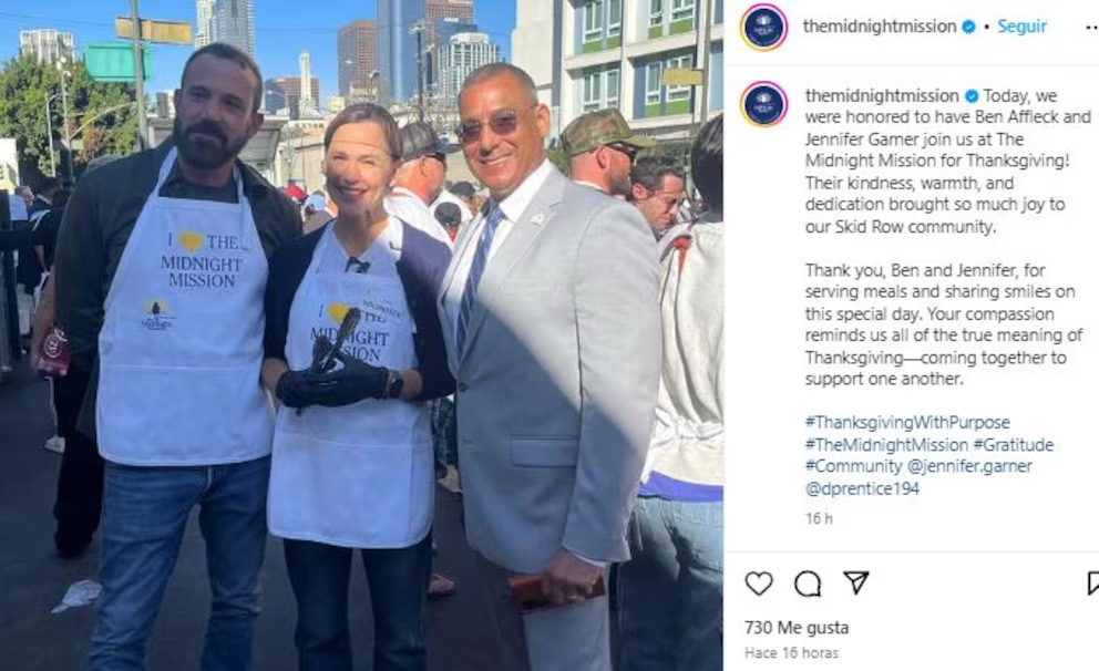 Durante el pasado Día de Acción de Gracias, la expareja colaboró en un evento benéfico para la organización Midnight Mission, sirviendo comidas a más de 2,000 personas sin hogar en Los Ángeles antes de disfrutar una cena familiar.