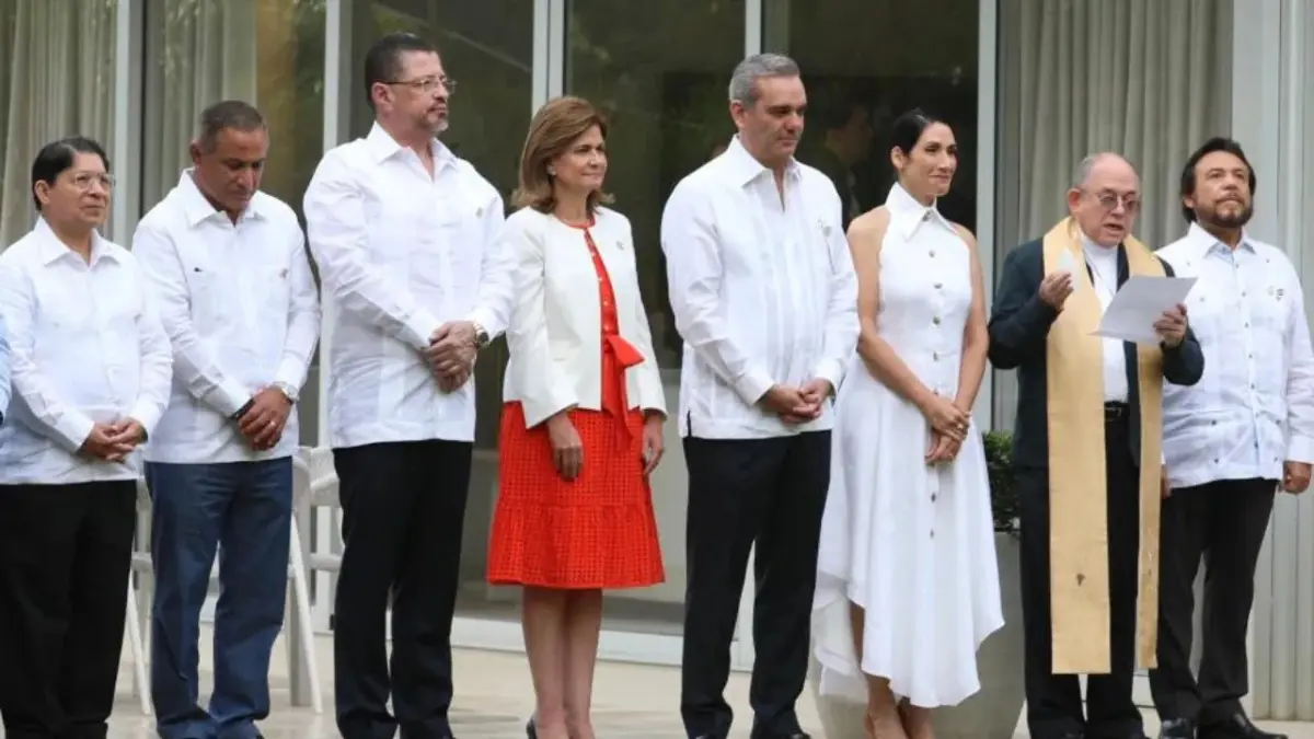 SANTO DOMINGO.- El presidente Luis Abinader, junto a la primera dama Raquel Arbaje y la vicepresidenta Raquel Peña, encabezaron la bendición de la casa presidencial en Santiago de Los Caballeros.