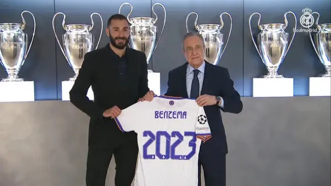 "El Real Madrid CF y Karim Benzema han acordado la ampliación del contrato del jugador, que queda vinculado al club las dos próximas temporadas, hasta el 30 de junio de 2023", declaró el conjunto madrileño.