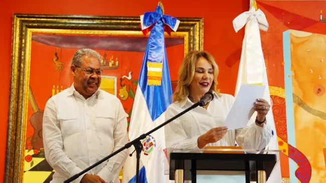 En la rueda de prensa, Germán estuvo acompañada por el viceministro de Identidad Cultural y Ciudadanía, Pastor De Moya; el director de Gestión Literaria, Fari Rosario, y el presidente de la Comisión Permanente de Efemérides Patrias, Juan Pablo Uribe, así como por otros funcionarios de la institución cultural.