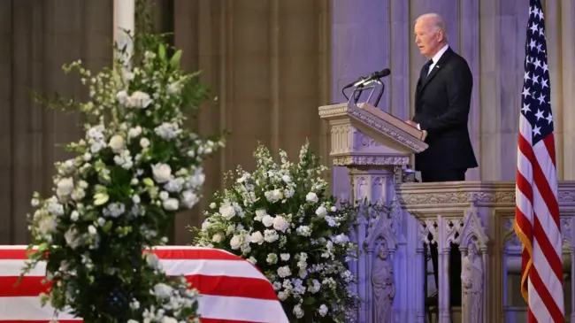 Durante su intervención en el funeral de Estado celebrado en la Catedral Nacional de Washington, Biden recordó que respaldó la candidatura presidencial de Carter de 1976 por su fuerte carácter.