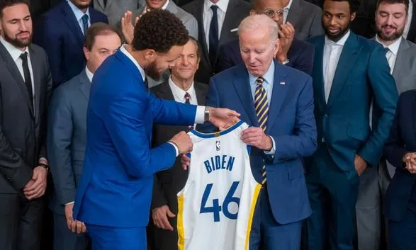 Por su parte, Curry dijo que "significa muchísimo" para su equipo estar en la Casa Blanca para celebrar su último anillo y le regaló a Biden una camiseta de los Warriors con la sugerencia de que quizá podría colgarla en el Despacho Oval.