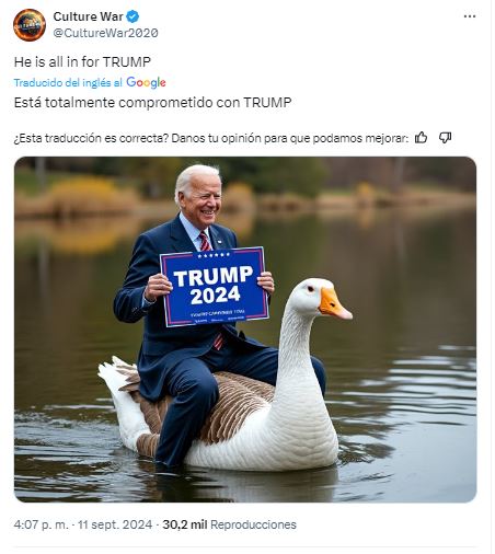 Pese a que el portavoz de la Casa Blanca, Andrew Bates, explicó que Biden hablaba con los presentes de la necesidad de que los partidos demócrata y republicano, recuperen la unidad que mostraron tras los atentados del 11-S, los memes del actual presidente de los Estados Unidos apoyando a apoyando a Trump no se hicieron esperar.