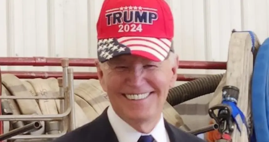 Usuarios de X (antes Twitter) rápidamente sacaron capturas del vídeo y viralizaron una foto donde se ve a un feliz Joe Biden portar una gorra con la inscripción "Trump 2024".