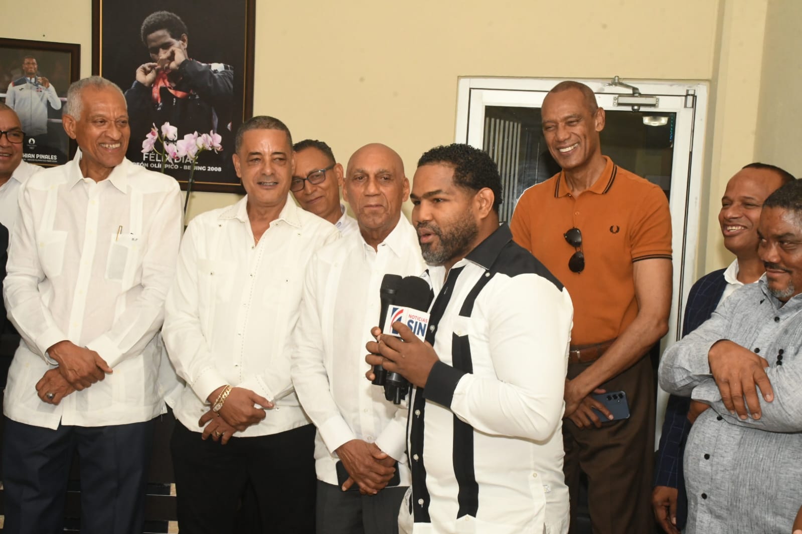 Presentes, los integrantes del comité ejecutivo de la Fedoboxa: Primitivo Cadete, tesorero; Ramón Leonado, secretario; Miguel Martínez, Félix Díaz, Luciano Ramírez, entre otras personalidades.