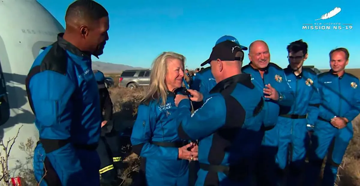 Los viajeros fueron recibidos entre aplausos y emocionados abrazos por un equipo de de Blue Origin encabezado por el mismo Bezos, quien abrió la puerta de la cápsula. Bezos inauguró el pasado 20 de julio los vuelos de turismo espacial de su empresa con un viaje en el New Shepard, que superó en esa ocasión los 106 kilómetros de altura.