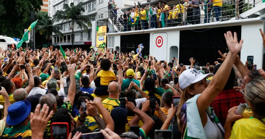 Los seguidores ultra empezaron a concentrarse en la Avenida Paulista horas antes del inicio del acto para encontrar lugar en las primeras filas frente al camión, cuyos altavoces emitían música techno a todo volumen para animar el ambiente.