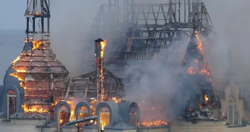 Bombardeo ruso deja en llamas "castillo de Harry Potter" de Odesa