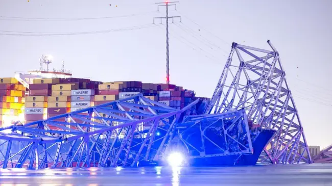 Bomberos buscan a más de 20 personas caídas al río tras derrumbe de puente en Baltimore