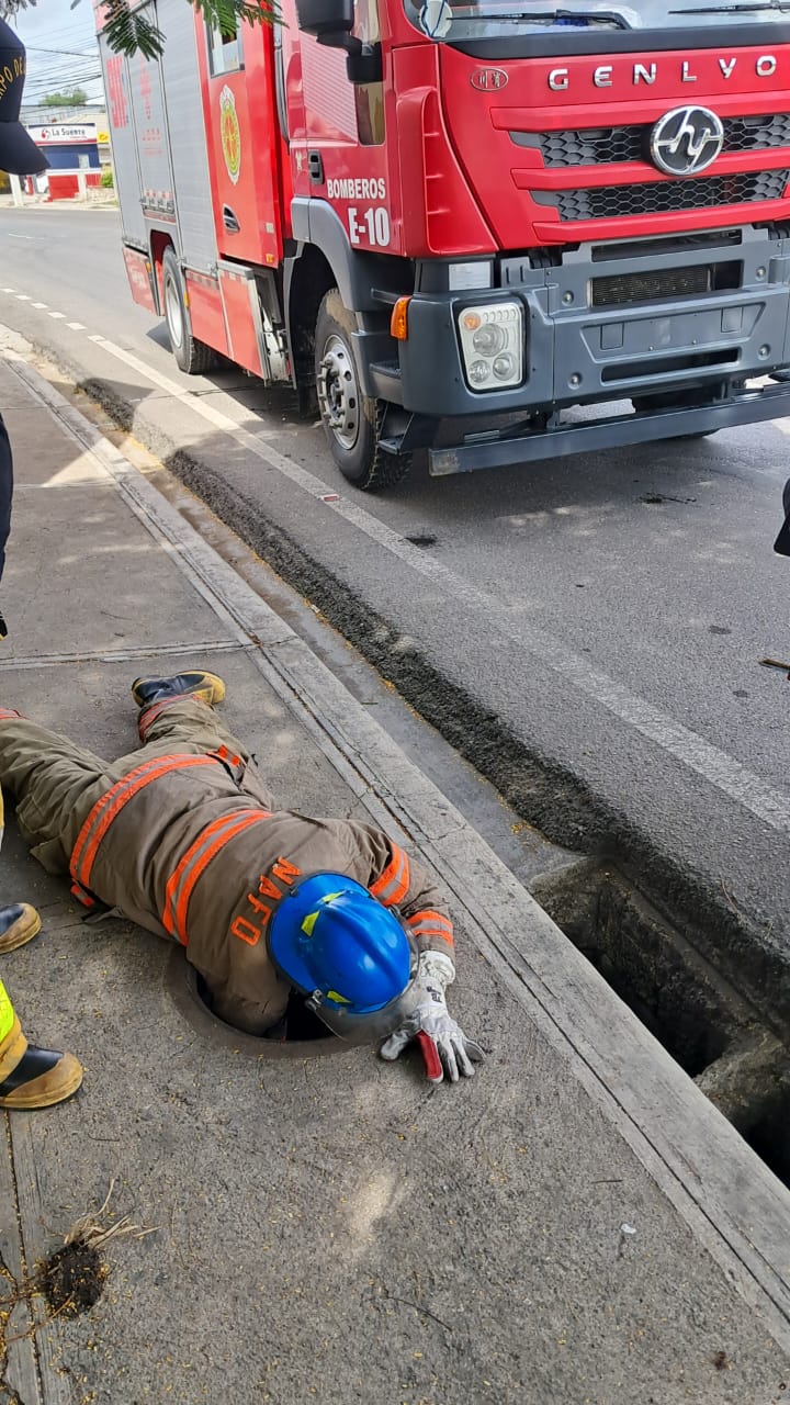 Al llegar al lugar, los rescatistas accedieron cuidadosamente a la alcantarilla para liberar al canino. Tras varios minutos de esfuerzo, lograron sacar al perro, quien, aunque asustado, se encontraba ileso y en buenas condiciones.