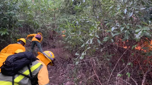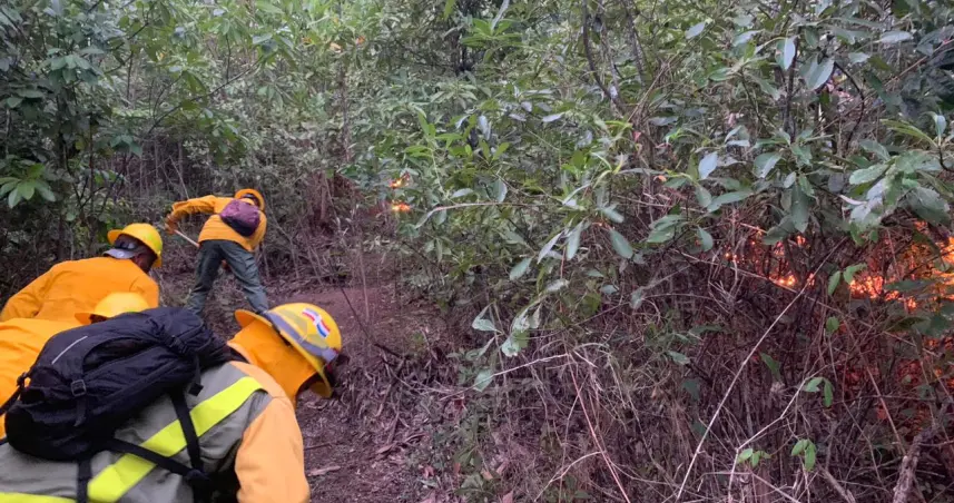 El incendio ha afectado unas cuatro tareas con pinos y acacias, informó Jimmy Abréu, del Programa Nacional de Manejo del Fuego del Ministerio de Medio Ambiente y Recursos Naturales (MMARN)