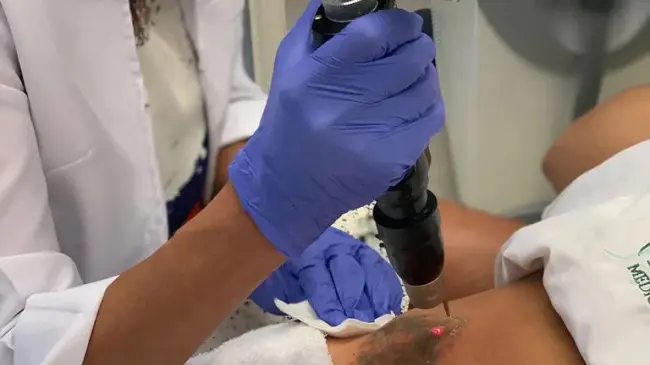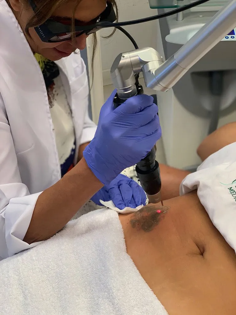 “El tratamiento en sí es doloroso porque las tintas se encuentran depositadas en las capas profundas de la piel que es dónde están los nervios que nos hacen sentir calor, el frío, el dolor. Al romper las partículas de tinta se rozan esas terminaciones nerviosas y se siente un dolor. . pero al ser súper rápido se tolera muy bien, y en caso que la persona no lo tolere se puede aplicar anestesia tópica”.