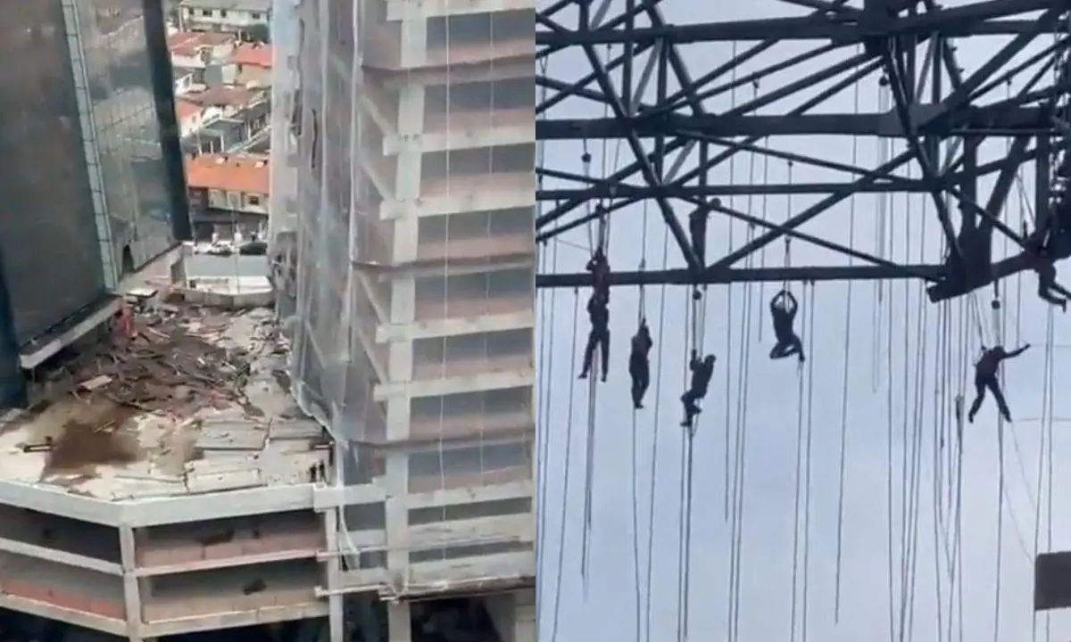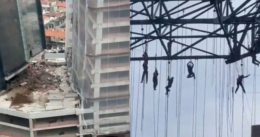 Brasil: colapsa un andamio y un grupo de obreros queda colgando de cuerdas