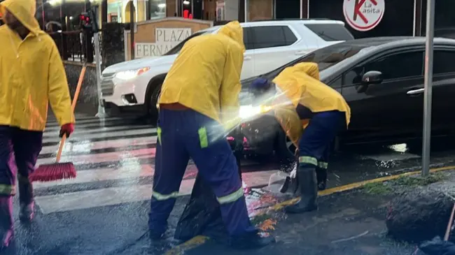 El ayuntamiento ha intensificado las labores de limpieza de imbornales y filtrantes como parte de los operativos para hacer frente a las lluvias causadas por una onda tropical por la que tanto el Distrito Nacional como el Gran Santo Domingo han sido colocados bajo alerta roja.