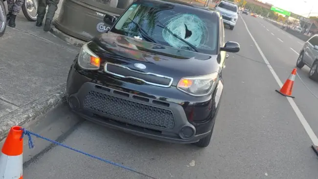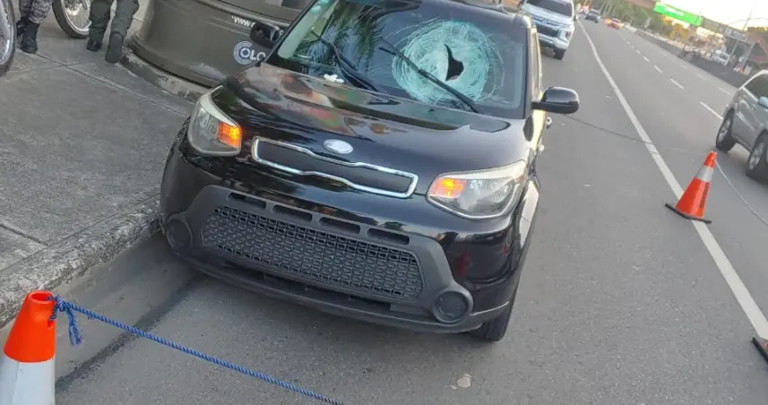 Tras recibir el impacto de la piedra, que traspasó el cristal delantero del referido vehículo, el conductor (hoy occiso) se detuvo unos 100 metros después frente al Centro Olímpico Juan Pablo Duarte.