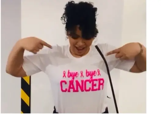 "Llena de agradecimiento, quiero anunciarles que por tercera vez puedo decir: “Bye bye, cáncer” (Adiós, cáncer)", anunció la interprete con el efecto de ‘boomerang’ de la red social Instagrama y vestida con t-shirt de color blanco y letras rosadas