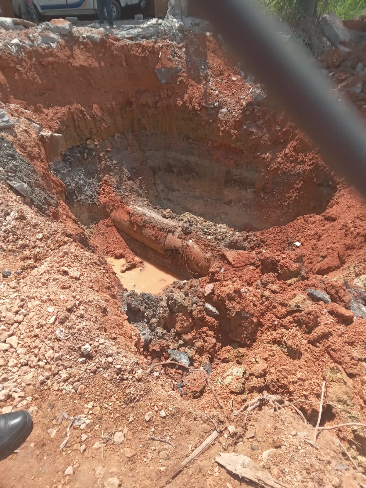 “Ya dejamos el área de trabajo preparada para cuando lleguen las juntas sustituir el tubo que estaba dañado por uno de polietileno de alta densidad con dos juntas en ambos extremos”, informa la CAASD.