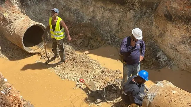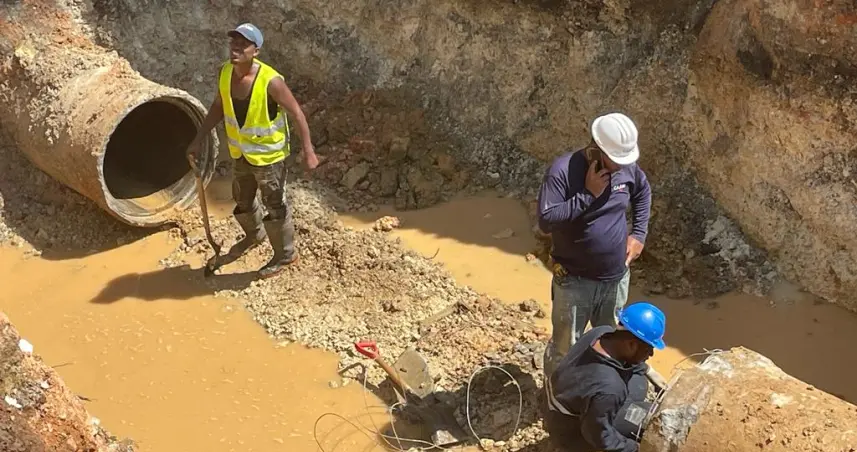 De acuerdo con una nota del departamento de Comunicaciones, brigadistas de la CAASD trabajan de manera ininterrumpida en la corrección de la avería localizada entre las avenidas República de Colombia y Monumental, en el tramo conocido como El Canódromo.