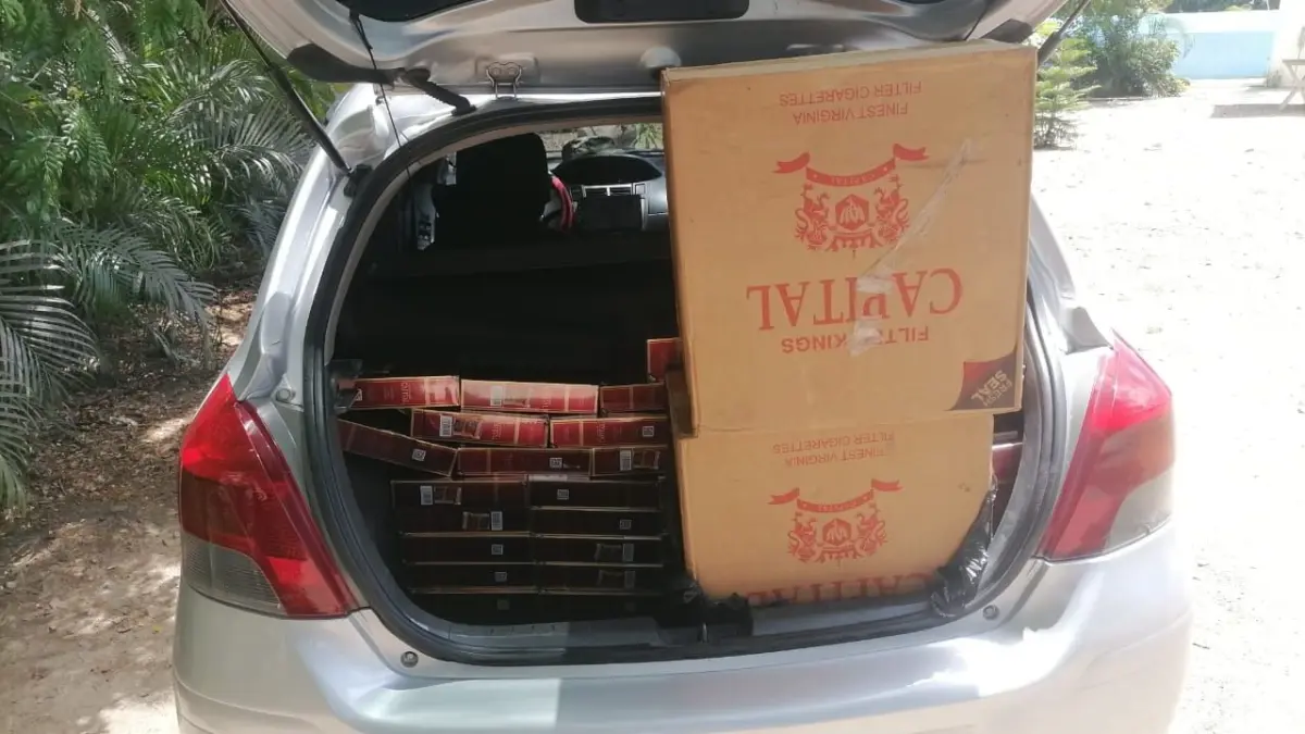 El alistado conducía un carro Toyota, modelo Vitz, color gris, cuando fueron encontradas en el interior del mismo, las cajas con los cigarrillos marca Capital, que suman un total de 59,400 unidades.
