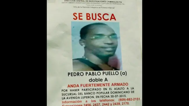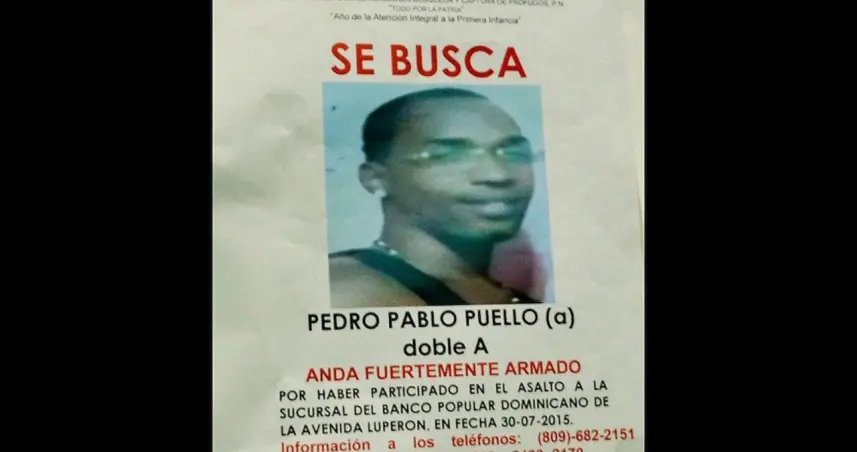 Se trata de Pedro Pablo Puello (Doble A), quien era el cabecilla de la banda que ejecutó el asaltó una sucursal del Banco Popular en el año 2015 en la avenida Luperón.