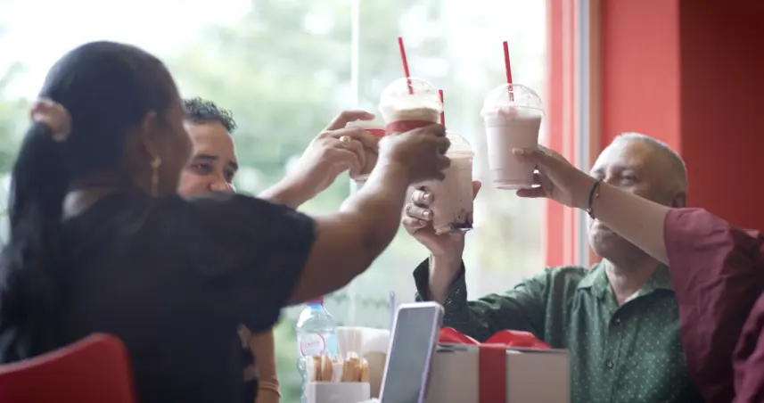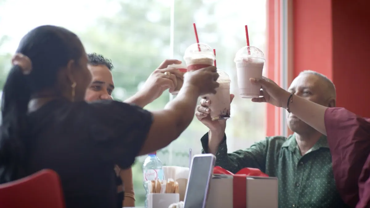 Acto siguiente, los familiares les hicieron creer a esos padres que habían sido invitados a probar un sabor de temporada en uno de los Santo Domingo Café de la ciudad, donde fueron sorprendidos con todos esos videos a través de las pantallas y los menús del local.