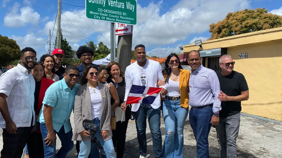 Miami, FL.- Durante una ceremonia, el comisionado de la ciudad de Miami que preside Manolo Reyes, nombró parte de la Calle 16 como “Johnny Ventura Way”, en honor al legendario cantante compositor, músico y arreglista que estuvo a cargo de desarrollar y modernizar el sonido del merengue contemporáneo.