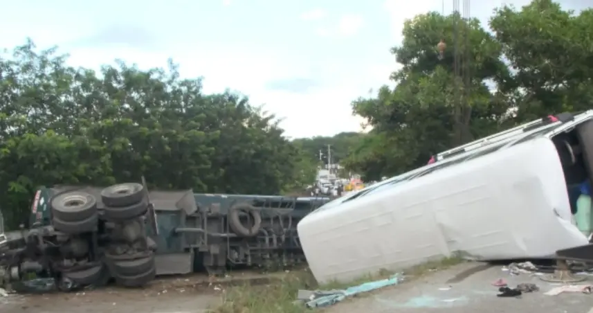 La Vega.-En la tarde de este viernes un camión de combustible impactó al menos cinco vehículos en la autopista Duarte, tramo el Pino, La Vega, dejando 14 personas heridas.