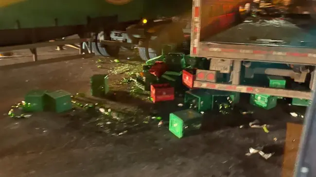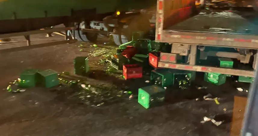 Cervecería informa no hubo lesionados en accidente con uno de sus camiones