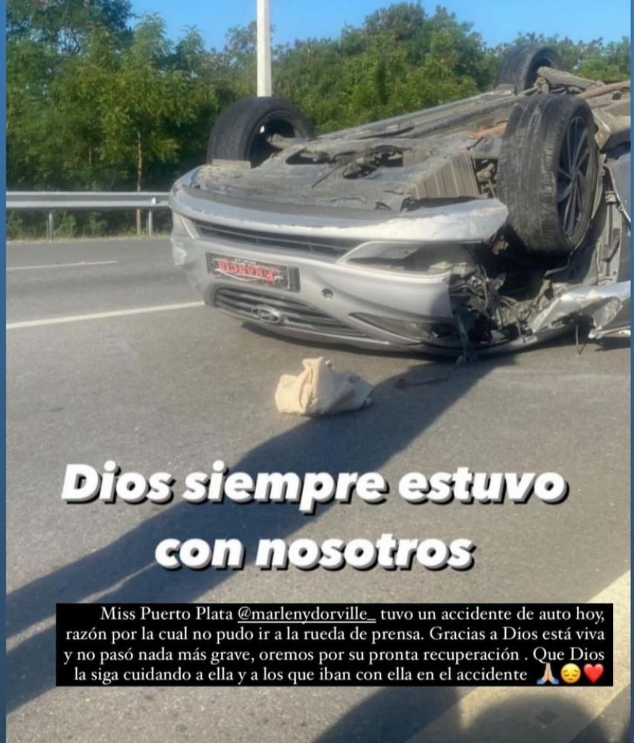 Una candidata que no estuvo presente en la presentación oficial de las candidatas fue la representante de Puerto Plata, Marleny Dorvalle, quien según palabras de la directora del certamen nacional Magaly Febles “quedó viva de milagro”, tras sufrir un aparatoso accidente de tránsito junto a su equipo de trabajo.