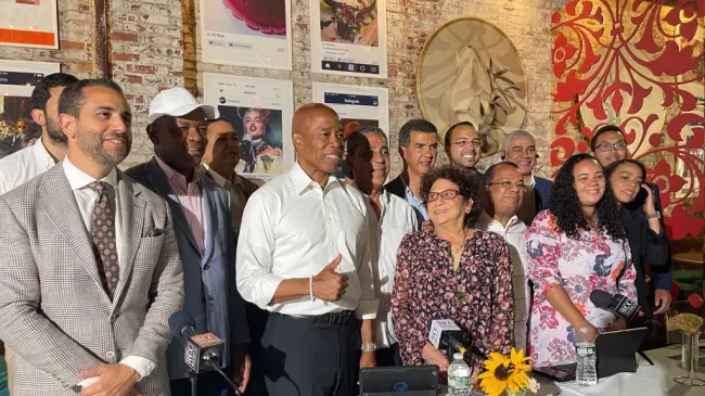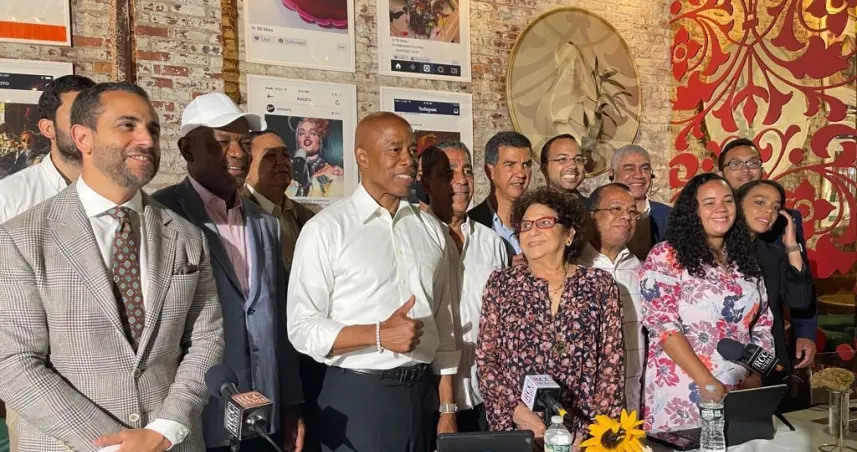 Eric Adams estuvo acompañado del congresista Adriano Espaillat, el concejal Ydanis Rodríguez, la asambleísta Carmen de la Rosa y el anfitrión Antonio Espaillat, presidente de RCC Media.