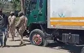 Captado el momento en que militar poncha neumáticos de camión de un nacional haitiano