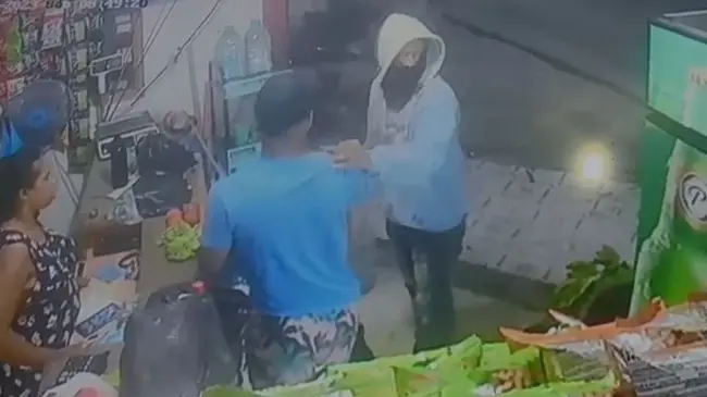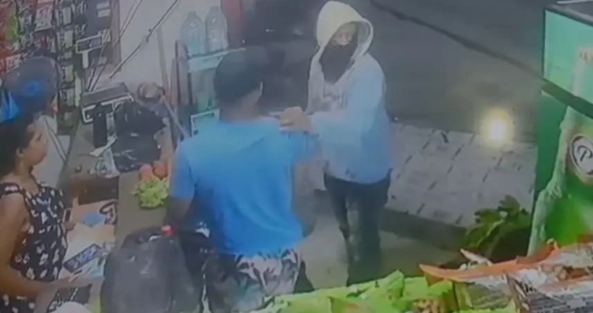 En el video se puede observar cuando un sujeto sorprende a los ciudadanos que se encontraban en el negocio, con pistola en manos, y carga con el dinero de la venta del día.