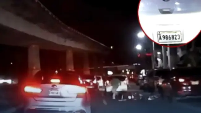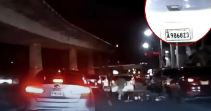 En las imágenes se aprecia cómo golpea con la parte trasera del vehículo a la motocicleta, provocando que el conductor perdiera el control y casi cayera al pavimento.