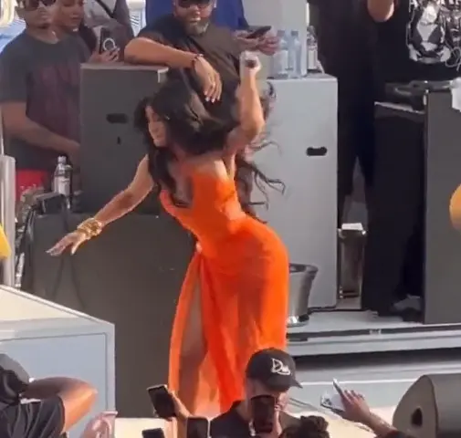 Este sábado 29 de julio, la intérprete de "I Like It" se encontraba dando un show. La artista estaba cantando sus mejores éxitos y luciendo espectacular en un body color naranja que acompañó con una falda transparente del mismo tono; sin embargo, cuando se acercó a la orilla del escenario una persona de la audiencia le arrojó lo que parece ser cerveza. En el video que ronda en las redes sociales se observa como las gotas alcanzan a Cardi y la mojan.