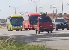 Redacción.-En un video que circula en redes sociales, se visualizan dos autobuses que en plena autopista realizan una carrera a toda velocidad.