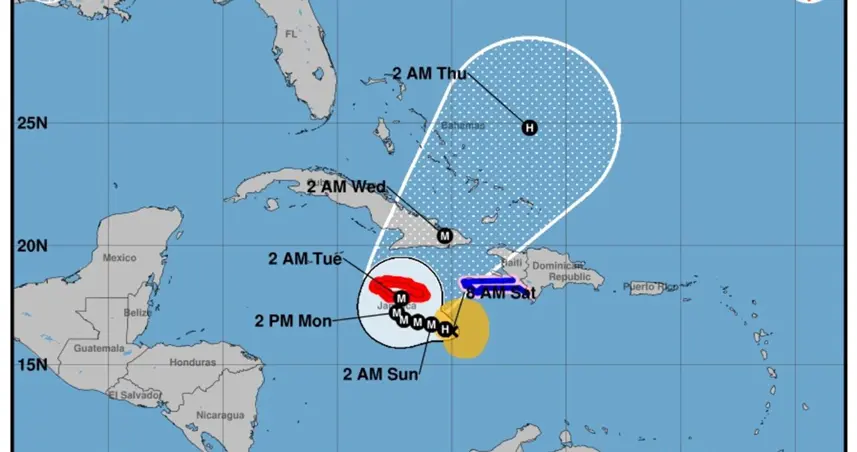 Melissa se desplaza lentamente hacia el oeste-noroeste y se espera que pase al sur de Jamaica durante el fin de semana, donde ya se ha emitido una advertencia de huracán. Haití, por su parte, permanece bajo vigilancia de huracán y aviso de tormenta tropical, mientras en la República Dominicana se mantiene la advertencia por lluvias intensas y posibles inundaciones.