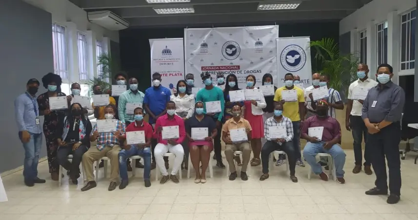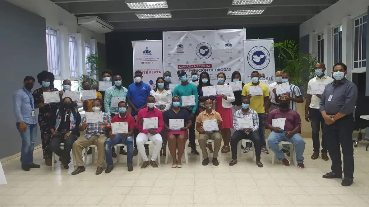 MONTE PLATA.- Más de 40 entrenadores y monitores deportivos de esta provincia fueron certificados como multiplicadores en materia de prevención contra el uso de sustancias ilícitas, luego de participar con éxito en el taller “Rol del Dirigente Deportivo, Entrenador y Profesor de Educación Física en la Prevención”, impartido por técnicos del Consejo Nacional de Drogas (CND), con el auspicio del Ministerio de Deportes.