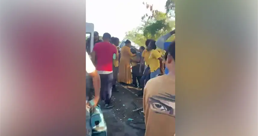 En el vehículo escolar viajaban alumnos del Politécnico PROMAPEC, ubicado en La Luisa Blanca, quienes resultaron afectados tras la colisión. El hecho generó preocupación entre comunitarios y familiares al tratarse de un transporte estudiantil.