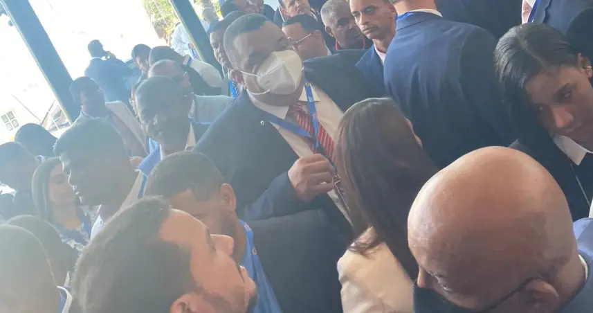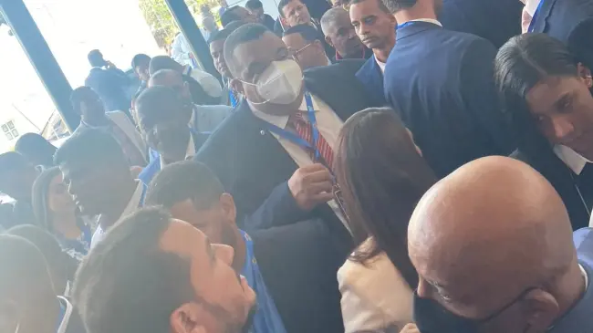 SANTO DOMINGO.- A tempranas horas de la mañana de este viernes, previo a la inauguración de la XIX Cumbre Latinoamericana, los participantes e invitados fueron sacados del salón de convenciones de la Cancillería con el fin de ser revisados por la seguridad del presidente Luis Abinader, quien iba a estar presente en dicho evento.