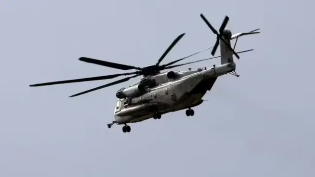 Aunque puede transportar a docenas de personas, la tripulación normal del Super Stallion es de cuatro personas: un piloto, un copiloto, un jefe de tripulación y un mecánico/artillero, según un sitio web de la Marina estadounidense.