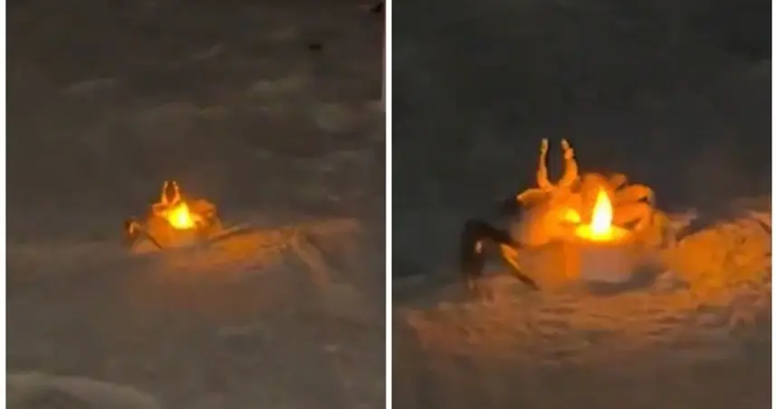 De manera sigilosa, los cangrejos se acercaron al lugar y comenzaron a examinar las luces. Al notar que las velas no quemaban, decidieron llevárselas, como si fueran un tesoro recién descubierto.