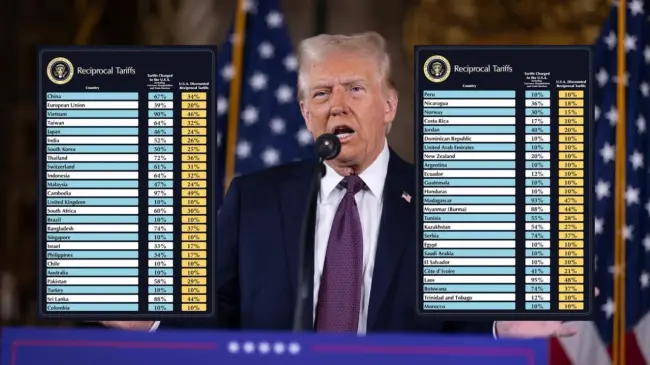 • Y un arancel específico adicional para cada país, según el baremo que la Administración estadounidense ha calculado teniendo en cuenta el "perjuicio histórico" en sus relaciones comeciales. Es lo que Trump ha considerado como "arancel recíproco", en respuesta a los supuestos impuestos a los productos estadounidenses en otros países a los que culpa del déficit comercial de EE.UU., algo que niegan la UE y otras naciones afectadas.