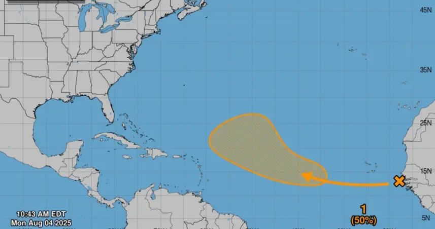 El Centro Nacional de Huracanes mantiene bajo vigilancia una onda tropical en el Atlántico con amplio potencial de evolución ciclónica.