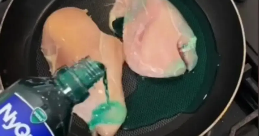 Se trata de cocinar el pollo con NyQuil, un jarabe de la tos.