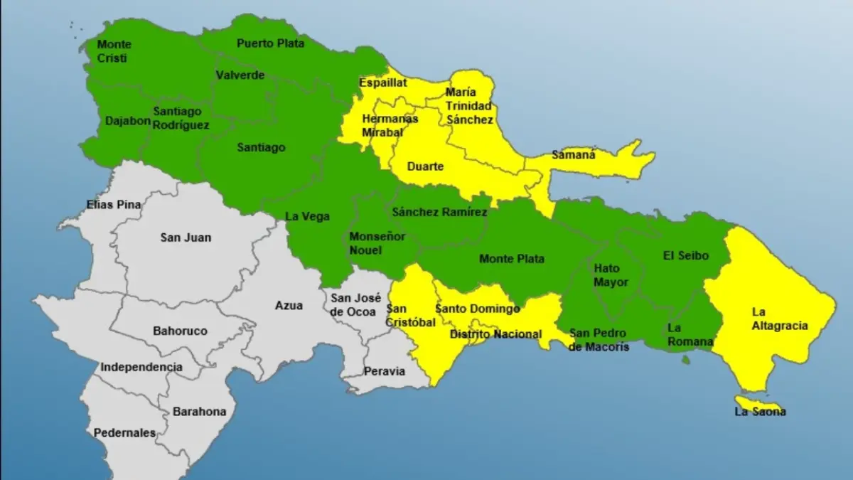 Santo Domingo.- El Centro de Operaciones de Emergencias (COE), aunque mantiene 23 provincias en alerta, aumentó a nueve el número de provincias en alerta amarilla, mientras que mantiene catorce en verde, por la incidencia de una vaguada.