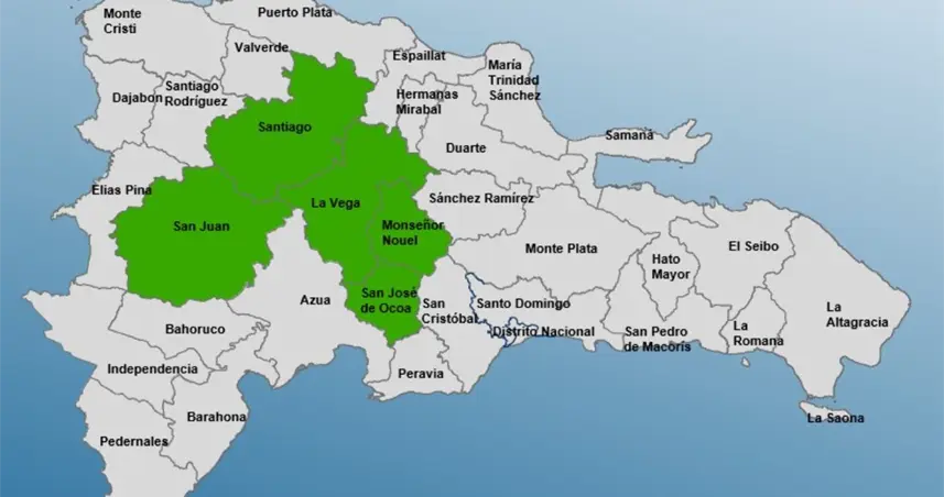 Debido a estas condiciones, el COE emitió alerta verde para las provincias de Santiago, San Juan, Monseñor Nouel, La Vega y San José de Ocoa, por posibles crecidas de ríos, arroyos y cañadas, así como inundaciones repentinas o urbanas.